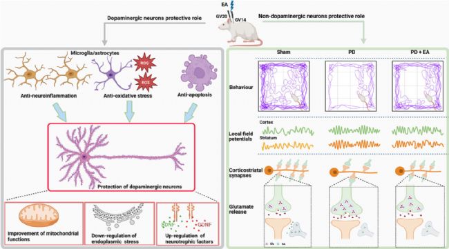 本研究揭示了EA治療PD的時間動態和最佳參數,它強調了抑制皮質紋狀體谷氨酸傳遞在EA治療PD中的意義。用EA靶向谷氨酸能神經元有望作為一種非多巴胺能干預治療PD患者的運動癥狀和異常神經活動。