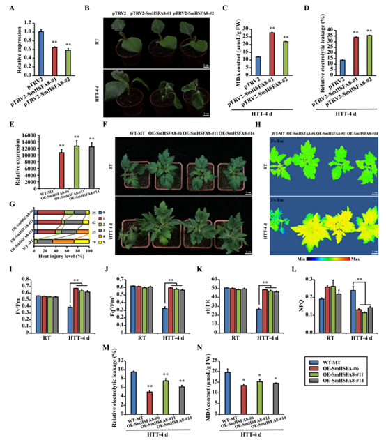 通過病毒誘導的基因沉默(VIGS)和過表達實驗,結果表明SmHSFA8正調控茄子的耐熱性。
