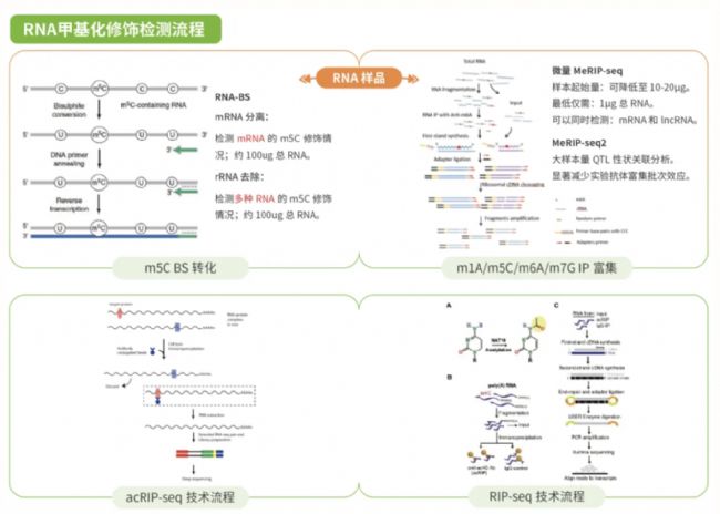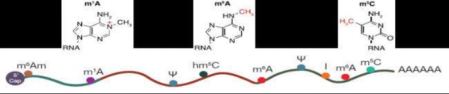 RNA修飾指在RNA分子上發生的化學變化,這些變化不涉及RNA序列改變,而是通過添加或去除某些化學基團來改變RNA分子的性質。甲基化修飾是最常見的RNA修飾之一,包括m6A、m5C、m1A、m7G等,參與RNA穩定性、定位、剪接、翻譯以及降解等過程。