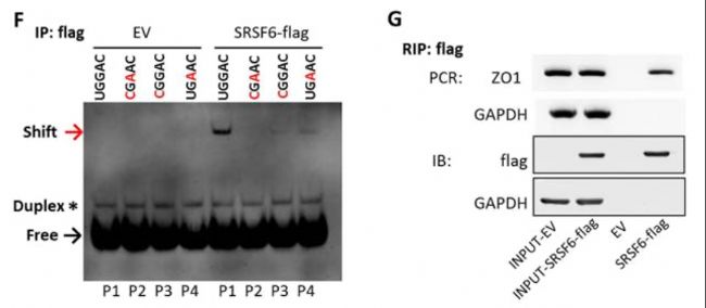 本研究通過RIP-seq鑒定SRSF6調控的可變剪切(AS)及其結合位點,揭示SRSF6在CRC樣本中上調,并與不良預后相關,在體外和體內促進增殖和轉移。鑒定出SRSF6調控的AS靶標,并揭示SRSF6結合位點。SRSF6通過直接結合到其23號外顯子位點來調控ZO-1異常剪接,從而作為癌基因發揮作用。