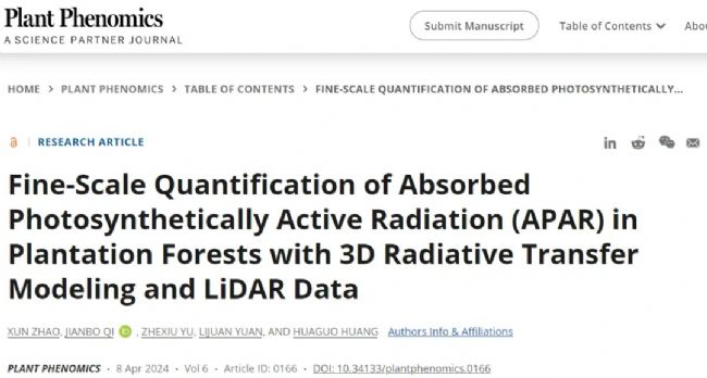 Plant Phenomics | 北京林業大學林業定量遙感團隊開展人工林精細尺度光合有效輻射吸收(APAR)量化研究