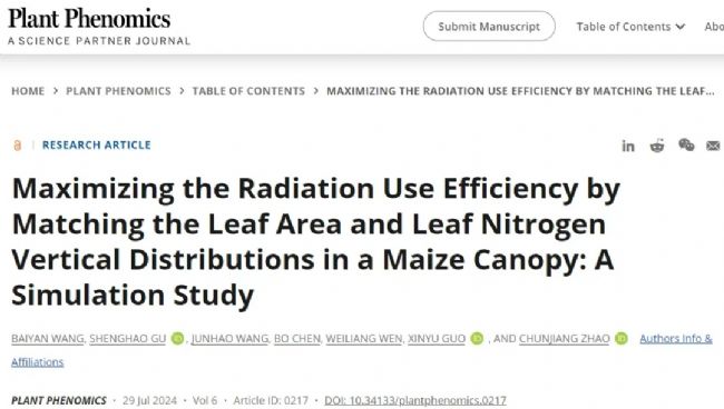 Plant Phenomics | 北京市農林科學院基于冠層光合作用模型刻畫出玉米高光效理想株型