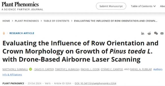 Plant Phenomics | 基于無人機激光掃描技術探索行列方向與樹冠形態對火炬松生長的影響