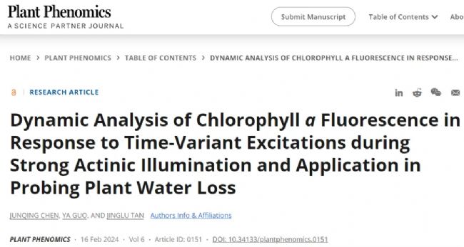 Plant Phenomics | 美國密蘇里大學聯合江南大學通過強光下葉綠素a熒光動態分析揭示植物水分流失新機制