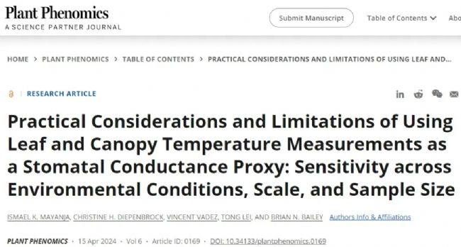 Plant Phenomics | 葉片和冠層溫度作為代替氣孔導度實際測量的考慮因素和局限性:對環境條件、規模和樣本量的敏感性