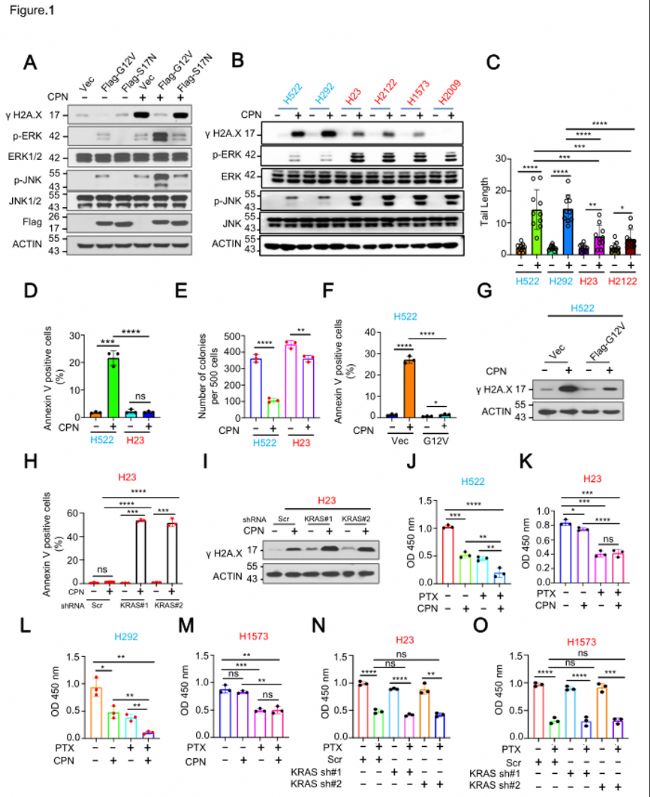 細胞模型與藥物處理:使用多種細胞模型,包括BEAS-2B(正常支氣管上皮細胞)、KRAS野生型NSCLC細胞(NCI-H522)和KRAS突變型NSCLC細胞(NCI-H23)。通過過表達KRAS突變體(G12V)或敲低KRAS,研究其對鉑類藥物(順鉑)耐藥性的影響。