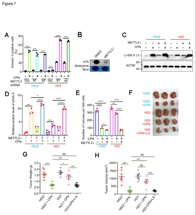 圖7:METTL3抑制使攜帶KRAS突變的NSCLC細胞在體內對順鉑敏感。