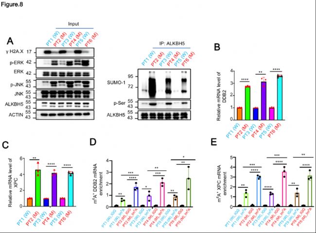圖8:KRAS/ERK/JNK/ALKBH5-PTMs/m6A/DDB2&XPC/核苷酸切除修復信號軸在臨床肺癌患者中頻繁發生