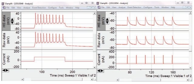 單通道記錄,全細胞記錄,大膜片記錄,傳統胞內記錄,胞外場電位記錄,人工雙分子層膜片鉗記錄、膜片鉗各種模式的記錄、其他電生理信號的記錄。