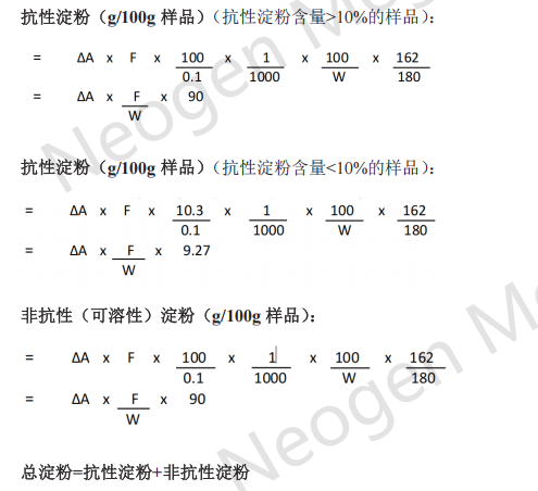 注:這些計算可通過使用Megazyme 的Mega-Calc™來簡化, 您可以從Megazyme網站上相關產品頁面進行下載(www.megayzme.com)。
