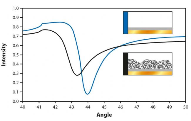 表面等離子體共振(SPR)是一種成熟的測量實時無標記分子相互作用的方法。強大的多參數表面等離子體共振(MP-SPR)儀器能夠在較寬的角度范圍(40-78度)內以及在多個波長下進行測量,這使得SPR的適用性也擴展到了組織工程和使用完整細胞和納米粒子的生物傳感領域。其寬廣的測量范圍使得MP-SPR能夠測量厚度顯著超過SPR場穿透深度的薄膜,例如微米級厚度的聚合物薄膜、陶瓷薄膜或者活細胞(圖1)。