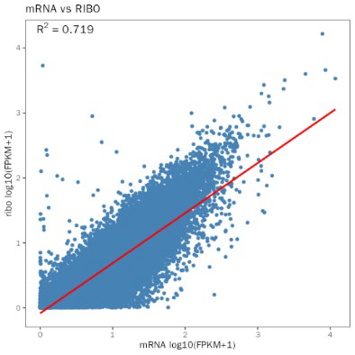 (2)Ribo-seq與RNA-seq的相關(guān)性分析
