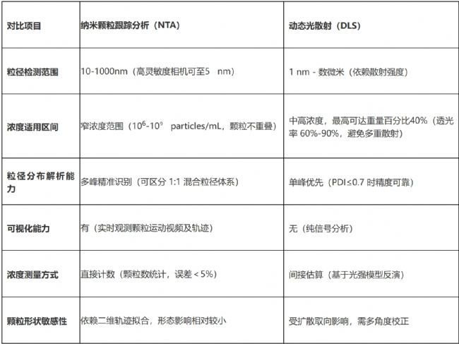 NTA 技術的核心優勢在于其能夠實現單顆粒分辨率,直接觀察和分析單個納米顆粒的行為 。與 DLS 技術不同,NTA 技術不需要對大量顆粒進行統計平均,因此能夠避免光強加權導致的小顆粒信號掩蓋問題,更準確地反映納米顆粒的真實粒徑分布 。此外,NTA 技術還可以直接測量顆粒的濃度,無需依賴光強模型,這使得它在測量低濃度樣品時具有更高的準確性 。
