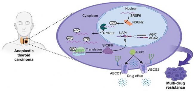 本研究揭示了NSUN2/SRSF6/UAP1信號軸在ATC的MDR中的關鍵作用,并確定了NSUN2作為化療和靶向治療的協同靶點。