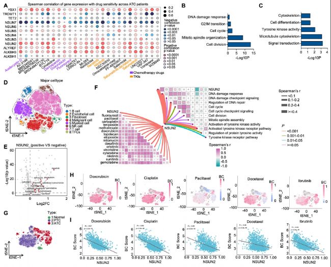 scRNA-seq測序分析顯示,NSUN2在ATC細胞中的表達與多種化療藥物和TKI的耐藥性相關。