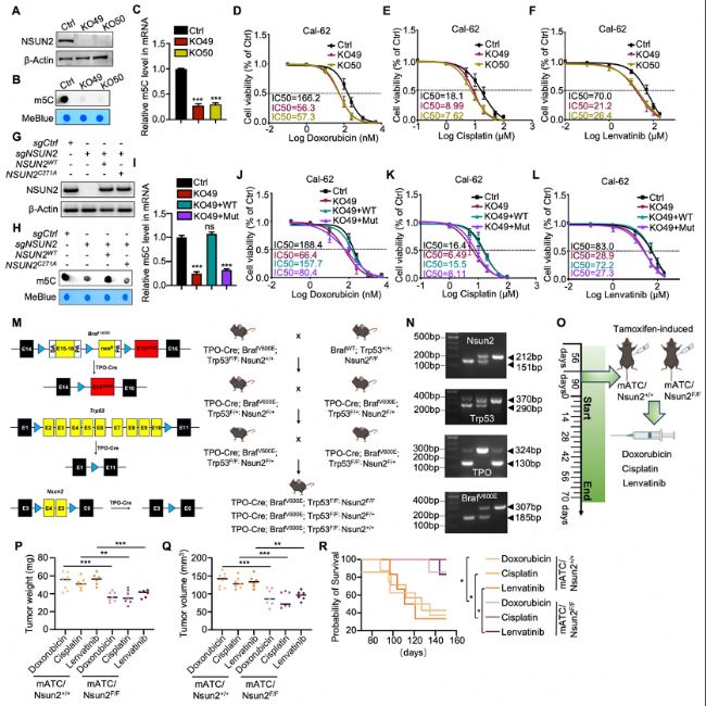 動物模型:構建Nsun2基因敲除的自發性甲狀腺癌小鼠模型,評估NSUN2體內對MDR影響。