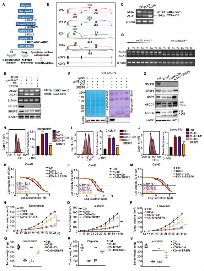 圖6:NSUN2通過SRSF6介導UAP1的可變剪切促進N-糖基化。