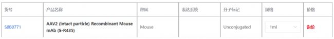 產(chǎn)品名稱:AAV2 (intact particle) Recombinant Mouse mAb (S-R435) 貨號(hào):S0B0771