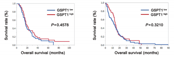 4.患者腦膠質(zhì)瘤樣本中GSPT1的表達(dá)情況,以及表達(dá)水平與患者預(yù)后的關(guān)系。