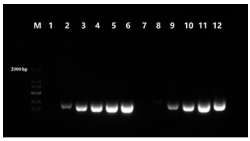 The results of 1μg pUC57 plasmid digestion separated under different quantity of BsaⅠ, The reaction was incubated for 60 minutes at 37°C, and 1% agarose gel was used for electrophoresis analysis after reaction.