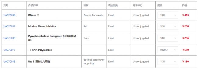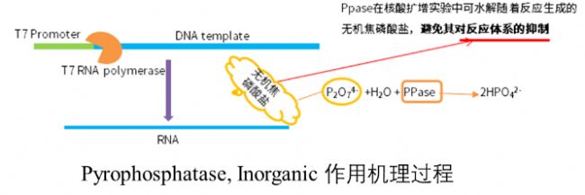 除T7 RNA Polymerase之外,Pyrophosphatase, Inorganic(無機焦磷酸酶)、Murine RNase Inhibitor、DNase Ⅰ作為轉錄輔助酶在體外轉錄中也發揮著重要的作用: