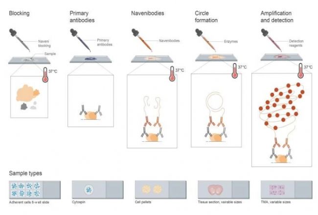 PLA技術(shù)由瑞典NAvinci技術(shù)公司開發(fā),其核心原理基于臨近效應引發(fā)的信號放大(Söderberg, O. et al. (2006). Direct observation of individual endogenous protein complexes in situ by proximity ligation. Nature Methods, 3(12), 995 - 1000.)。
