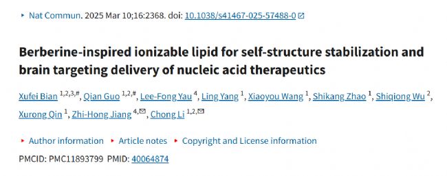 2、小檗堿衍生型可電離脂質(zhì):同步解決核酸藥物結(jié)構(gòu)穩(wěn)定性與腦靶向遞送難題
