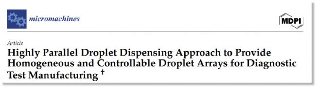 在此背景下,弗萊堡大學微系統工程系(IMTEK)聯合德國Biofluidix公司于2024 年 6 月 26 日在《Micromachines》雜志上發表了文章《Highly Parallel Droplet Dispensing Approach to Provide Homogeneous and Controllable Droplet Arrays for Diagnostic Test Manufacturing》。在該研究中,作者研發了一種微量-壓電式皮升級/納升級點樣設備,用于生物芯片等需要高精度噴點產品的研發制造。