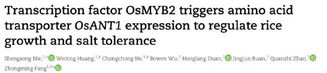 在大多數植物物種中,氨基酸是氮運輸的主要形式。為滿足根或葉等吸收器官發育對氮的需求,氨基酸會通過維管系統進行運輸。在植物生長和發育的各種過程中,氨基酸轉運蛋白(AATs)作為膜整合蛋白發揮著重要作用。其中,OsANT1 作為水稻中的一種 AAT,其在水稻中的功能與調控機制尚不明確,它是否參與水稻的生長、發育以及抗逆過程還有待深入探索。鹽脅迫會導致植物體內脫落酸(ABA)積累。ABA 作為植物應對逆境脅迫的核心調節因子,能夠通過調控氣孔關閉、維持離子穩態、調節鹽脅迫響應基因的表達以及改變代謝過程,增強植物的耐逆性。盡管已有研究揭示了 ABA 信號通路和氨基酸轉運蛋白在植物耐逆性方面的作用,但水稻中 OsANT1 的具體功能以及它與 ABA 信號通路之間的關系,目前仍不明確。