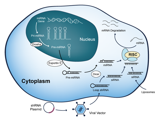 2. siRNA的作用:siRNA通過RNA干擾(RNAi)機制,與目標mRNA完全互補配對,導致mRNA被降解,從而實現基因沉默。siRNA的作用機制類似于miRNA,但其作用更加直接和高效。