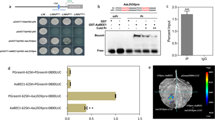 圖5. AaBEE1與AaLDOX啟動子結合。