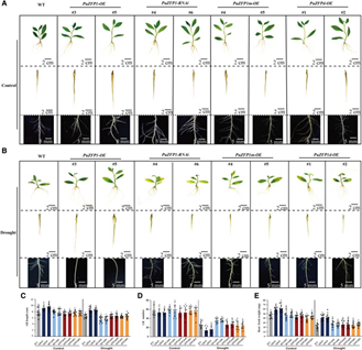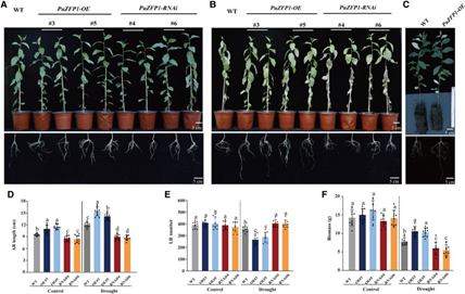 圖2. PuZFP1賦予楊樹抗旱能力。