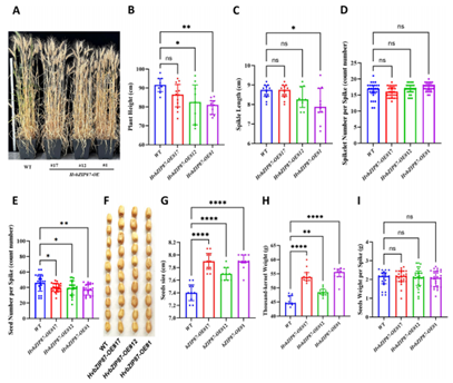 圖4. HvbZIP87-OE轉基因小麥株系的農藝性狀。