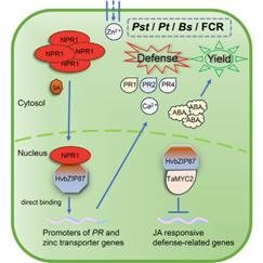 小麥是全球范圍內消費量最大,種植最廣泛的糧食作物之一。然而由于種植品種單一、全球氣候變暖等原因,小麥條銹病、葉銹病、白粉病等葉部真菌病害在我國不同麥區均有發生,嚴重威脅我國小麥生產與糧食安全。SAR是植物的一種廣譜防御機制,在初次接觸病原體后被激活。盡管SAR在模式植物如擬南芥中已被廣泛研究,但在小麥和大麥等禾本科作物中的分子機制仍不明確。如何利用植物SAR過程關鍵基因提升作物抗病水平,是植物免疫學領域從抗病分子機制研究到關鍵基因開發利用的重要科學問題。