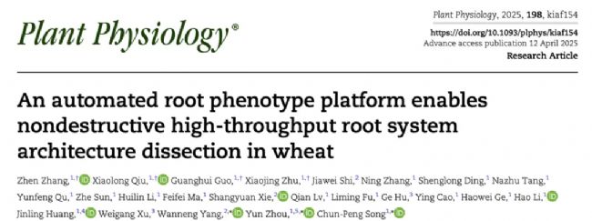 分享一篇河南大學宋純鵬團隊關于利用高通量根系表型平臺解析小麥根系構型的遺傳基礎的研究成果于2025年4月12日發表在國際學術期刊Plant Physiology上,以“An automated root phenotype platform enables nondestructive high-throughput root system architecture dissection in wheat”為題的文章。