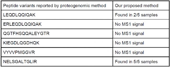 表3 DIAVariants與蛋白基因組報道肽段對比。