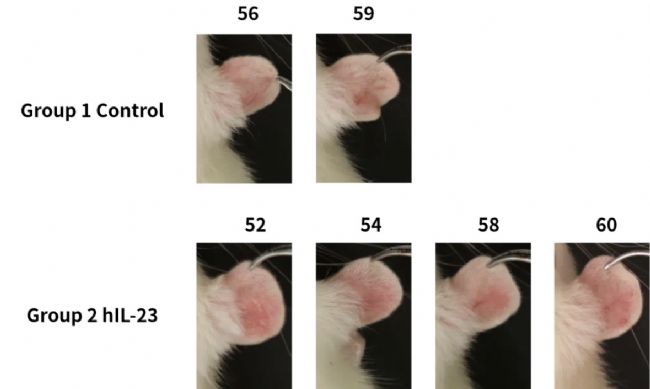 圖7. Human IL-23因子誘導的大鼠銀屑病模型耳部圖。