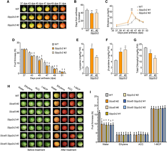 圖4. SlZAT5和SlPP2C2通過調節乙烯反應來調控番茄果實的成熟。