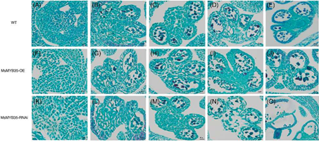 圖9. 野生型和過表達MsMYB35紫花苜蓿不同發育階段的細胞學觀察。