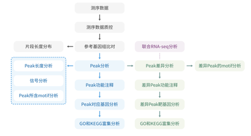 MeRIP-seq/m6A-seq技術原理為通過特異識別m6A修飾的抗體,對細胞內(nèi)具有m6A修飾的RNA片段進行免疫共沉淀。對沉淀下來的RNA片段進行高通量測序,結合生物信息學分析,即可在全基因組范圍內(nèi)系統(tǒng)解析m6A修飾的分布特征、富集序列模式及潛在調(diào)控功能。該技術是目前研究 m6A 修飾最廣泛使用的方法之一,已被應用于揭示m6A在發(fā)育、疾病等過程中的動態(tài)調(diào)控機制。