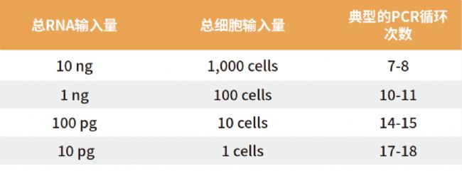 *使用以下表格作為指導,以幫助確定輸入的最佳PCR循環次數: