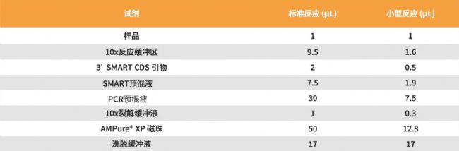 表1. 全反應(yīng)和小型化 cDNA合成反應(yīng)試劑體積。