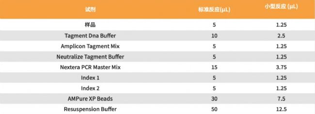 表 2. Nextera XT 片段文庫制備試劑體積。使用 MANTIS® 低通量芯片分配試劑。