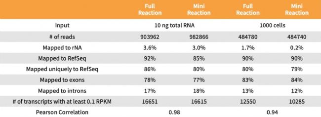 表4. 全反應(yīng)和小型化反應(yīng)條件的RNA-Seq數(shù)據(jù)分析比較。