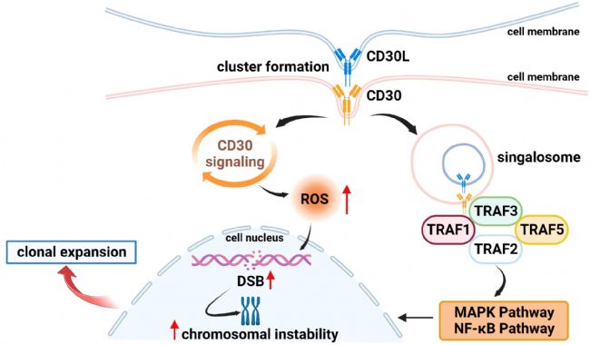 CD30 與細胞的增殖、死亡關系緊密。當它受到刺激,會誘導受體三聚化并啟動信號轉導,激活核因子 -κB(NFκB)通路,同時參與促分裂原活化蛋白激酶(MAPK)通路,在腫瘤細胞中發揮抗凋亡和促生存作用。而且,MAPK/ERK 通路與 NFκB 之間存在的正反饋環,不僅助力細胞存活,還會使 CD30 表達上調。在健康細胞中,CD30 基本不表達,僅在正常激活的 T 細胞和 B 細胞表面低表達;但在霍奇金淋巴瘤和間變大細胞淋巴瘤細胞表面,它卻呈現高表達狀態。這種在腫瘤細胞和正常組織細胞間的差異化表達,理論上能降低治療時的脫靶毒性,為腫瘤靶向治療提供了可能。