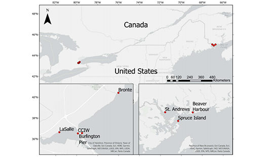 研究團隊從加拿大安大略湖和芬迪灣的四個不同地點(圖1)采集了淡水和海水樣本,制備了具有不同活體生物濃度的測試水樣。同時,研究團隊還從加拿大多個港口的船舶上收集了實際的壓載水樣本,以模擬船舶現場的應用場景。