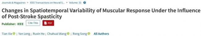 T. Xie, Y. Leng, R. He, C. Wang and R. Song, "Changes in Spatiotemporal Variability of Muscular Response Under the Influence of Post-Stroke Spasticity," in IEEE Transactions on Neural Systems and Rehabilitation Engineering, vol. 33, pp. 212-219, 2025.