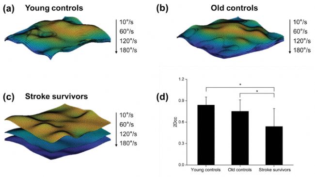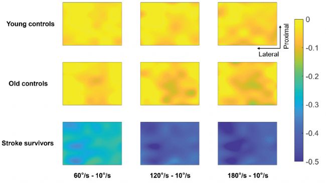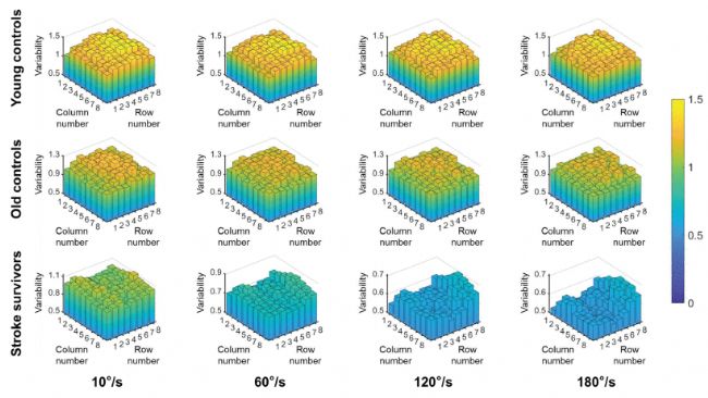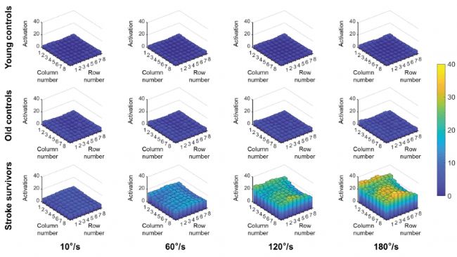 本研究招募了41名受試者,其中21名腦卒中幸存者,平均年齡 50.4±13.4 歲,符合首次腦卒中、偏癱、肱二頭肌改良 Ashworth 量表(MAS)評分 1-2 分等標準。10名健康老年對照組,10名健康年輕對照組。