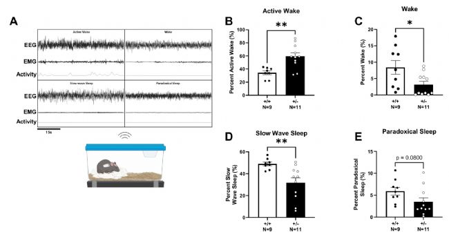 通過無線遙測技術對Syngap1+/-突變小鼠進行了系統的腦電活動和睡眠結構分析。