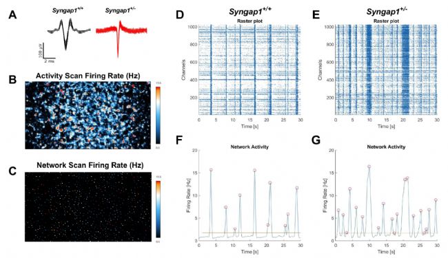 通過高密度微電極陣列技術(HD-MEA)系統比較了Syngap1+/-突變小鼠與野生型原代皮層神經元的電生理特性。